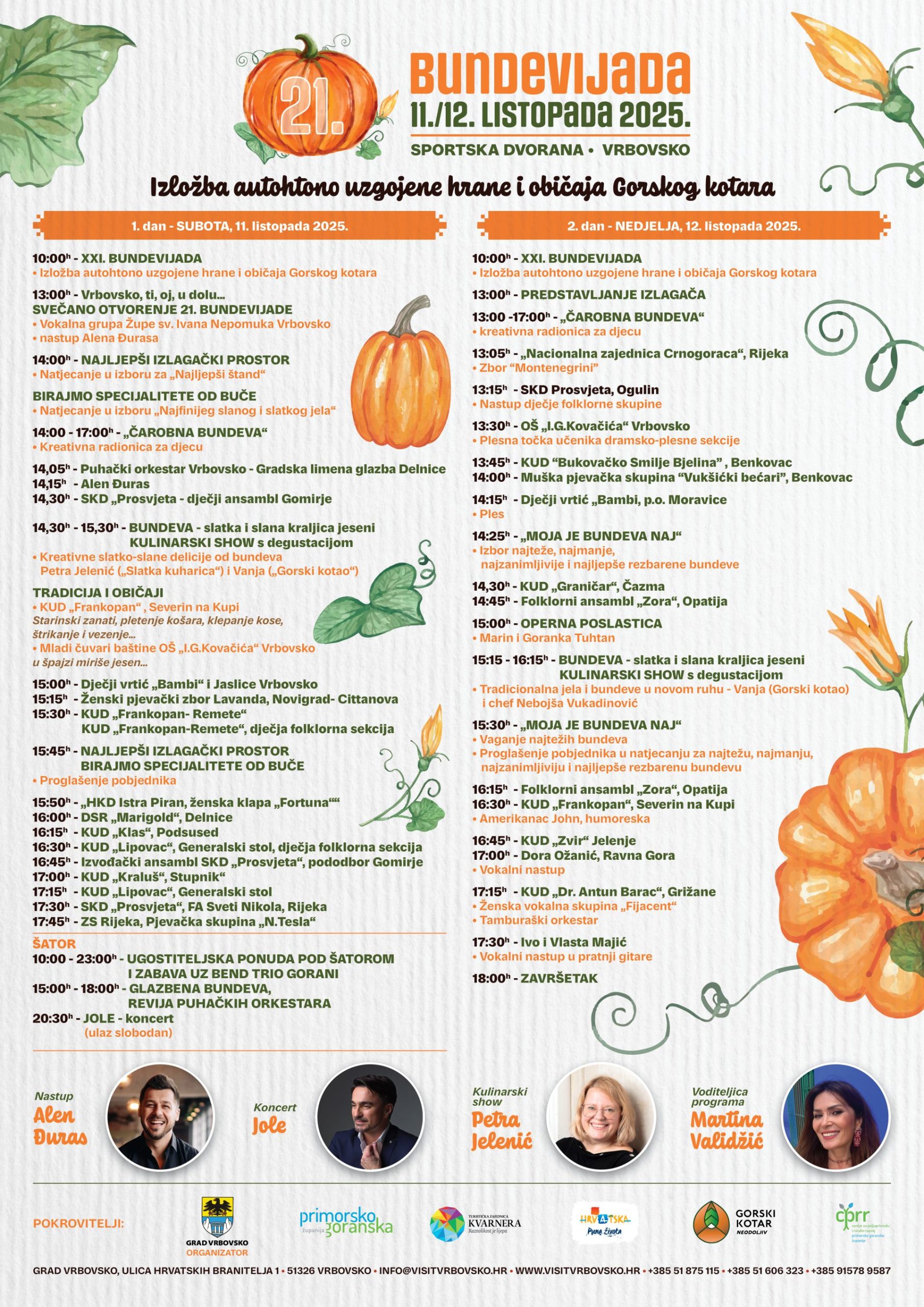 pozivamo Vas da nam se pridružite na 21. Bundevijadi koja će se održati 11. i 12. listopada 2025. u Sportskoj dvorani Grada Vrbovskog, od 9:00 do 18:00 sati.